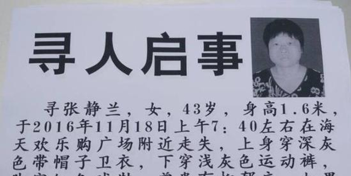 目前,张静兰已经失踪了两天一夜。田师傅和女儿最担心的是,张静兰几年前曾患抑郁症,走失可能与精神状况出了问题有关。