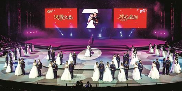 深蓝的警察制服挽起洁白的婚纱。昨日上午,第二季“汉警之恋·情定东湖”集体婚礼在东湖之滨的汉秀剧场隆重举行。“只因为在人群中多看了你一眼,再也没能忘掉你容颜……”10时28分,剧场内漾起深情款款的歌声,大屏幕上映出的却是民警抓捕歹徒、救援群众的镜头,观众席上不少亲友和来宾的眼眶湿润了。