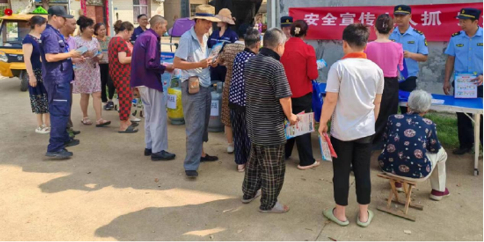 李家集街综合执法中心联合湖北浙楚能源李家集站,在李家集社区彭家岗村广场开展燃气宣传。普及燃气安全使用知识,发放《致全区燃气用户的一封信》,讲解液化瓶装气的分类、使用方法、及如何查看液化气罐检测明细等。