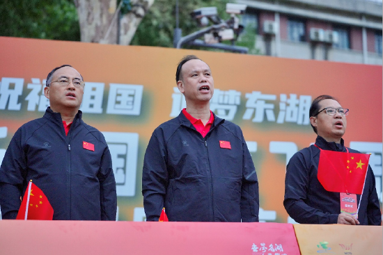 关注在凌波门迎着日出歌唱祖国,环绿道骑行游览东湖美景,托举巨幅国旗呈现爱国赤子心……国庆期间,武汉东湖处处涌动着“中国红”。为庆祝新中国75周年华诞,武汉东湖风景区精心组织开展“祝福祖国 追梦东湖”国庆系列活动,为广大市民和全国各地游客呈现国庆过节新方式,表达对祖国的美好祝愿。