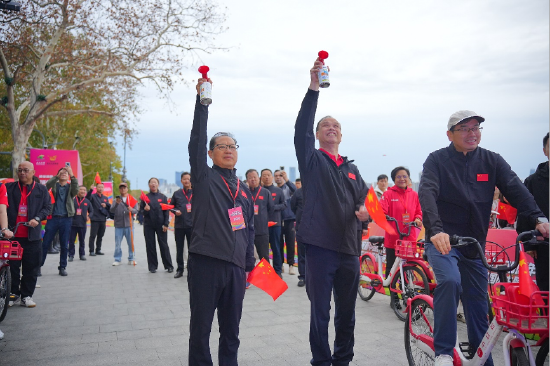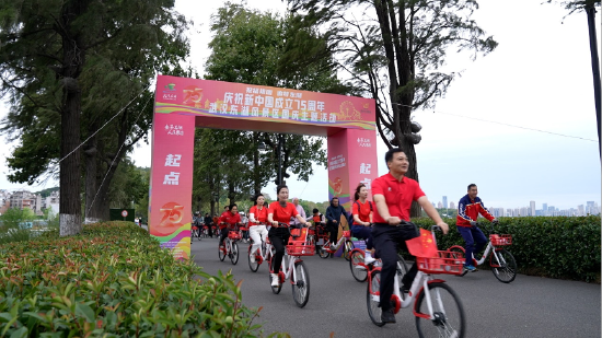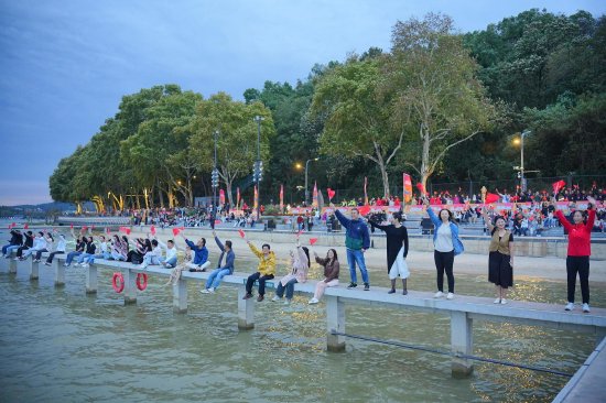 观日出唱红歌“祝福祖国”数千游客骑游绿道“追梦东湖”