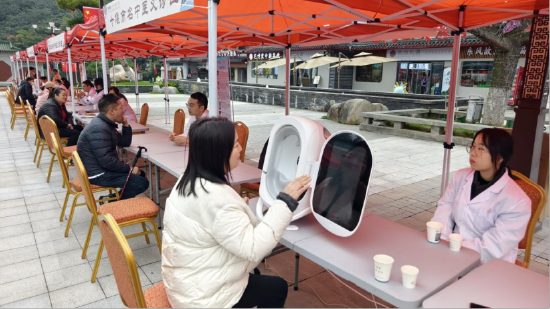 上午10点,义诊活动开始。记者看到,活动现场精心设置了中医药适宜技术体验区、湖北省知名中医义诊区、十堰市知名中医义诊区、中医药养生文化产品市集区、生物医药道地药材成果展销区、智慧中医诊疗区、中药茶饮免费品鉴区等7大区域。在中医义诊区,各医院的专家望闻问切,耐心细致地为游客和市民提供疾病诊断和健康咨询,针对性解决各类健康难题。