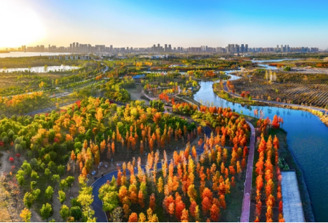 鱼梁洲中央生态公园在秋风中化身为色彩斑斓的童话世界。从高空俯瞰,宛如一幅美丽的油画。每年此时,公园内枫树叶由绿转黄再变红,似调色盘上的绚丽色彩,层层叠叠,错落有致。阳光透过叶缝洒下斑驳光影,为深秋午后增添了温暖与诗意。襄阳古城护城河畔层林尽染,古城、护城河、彩林、步道、城市相映成景,宛如美丽的油彩画,吸引了不少市民和游客前来打卡游玩。