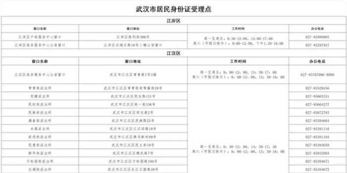 武汉各区居民身份证受理点