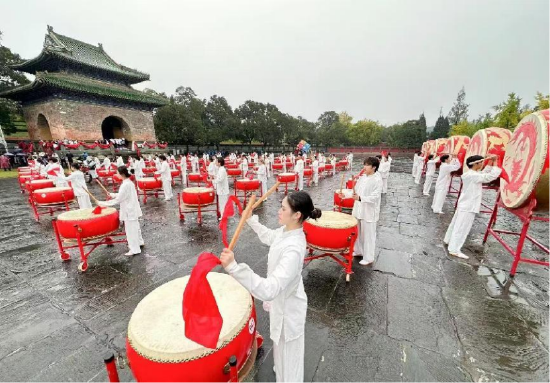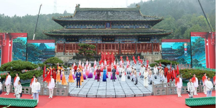 开幕式以“鼓声迎宾·祈福中华国泰民安”为序曲,在玉虚宫宫门前的广场上,随着雄劲的鼓声响起,旗阵演员随鼓点变换队形,生动诠释“易有太极,是生两仪”的古老智慧;笙乐融入武当道乐清虚之韵,重现“我有嘉宾,鼓瑟吹笙” 的迎宾雅礼。大道两侧,“大修武当盛景” 场景再现明成祖朱棣敕建武当的恢弘图景,来自武当山各大武校的 “太极娃” 与武当、少林、峨眉、崆峒、昆仑、华山六大武术门派上演 “千人太极”“演武和合”,展现中华武术的传承活力。