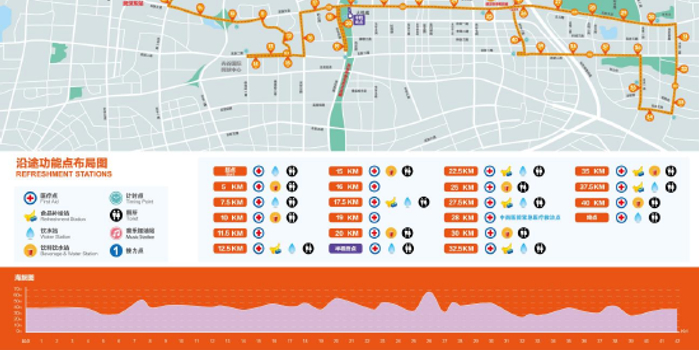 在赛事医疗服务方面,比赛当天赛道沿途将设立25个医疗站,配备医护人员537人,紧急医疗救治点1个,救护车35台,警医联动AED 22台,终点巡查员10台,自行车骑行AED 59台,急救跑者80人,医疗哨点65个,定点医疗瞭望志愿者460人,全力保障每一位参赛选手的生命安全。