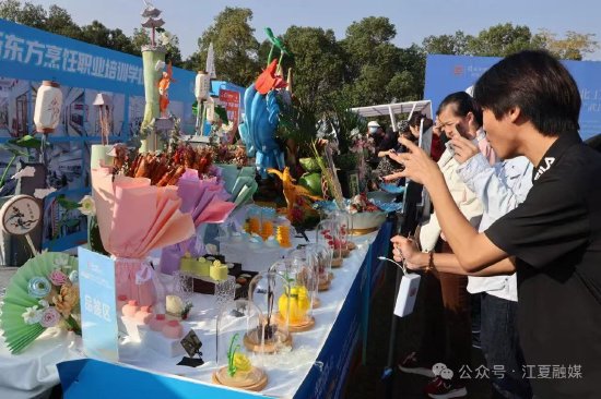 现场不仅有新东方的烹饪绝技绝活展、湖北经济学院的千人尝武昌鱼丸、湖北生态工程职业技术学院的花艺展示,还有风干武昌鱼、五里界豆、湖泗豆腐角等江夏地标食材和非遗产品免费供游客品尝。邹志平表示,“把江夏的地标食材和非遗楚菜免费分享给民众,是推广楚菜文化的好做法”。