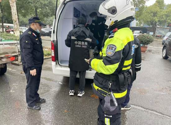 在等待专业救援期间,队员们始终守在伤者身边,耐心安抚情绪,仔细询问身体状况,并主动协助车主理清后续处理流程。当救护车到达后,他们小心协助将伤者抬上担架,全程护送直至车辆驶离。