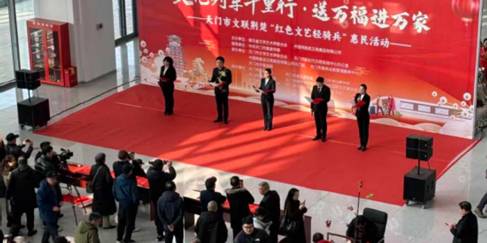 当天,以“文化列车千里行·万福进万家”为主题的市文联荆楚“红色文艺轻骑兵”文艺惠民活动,在天门站温馨举行。活动由天门市文学艺术界联合会、天门市新时代文明实践中心办公室、中国铁路武汉局集团有限公司天门站、天门市中医医院共同举办,十余家文艺团体(协会)参与,在春运首日为广大旅客和市民送上一场充满温情的新春文化盛宴和一系列文明实践活动。
