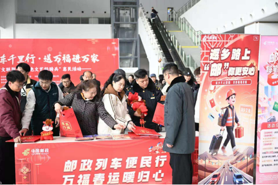 在便民服务区,市中医医院的医护人员为旅客提供健康咨询、爱心义诊、艾灸刮痧体验和中医茶饮,为旅客送中草药香囊,发放健康宣传资料,将关爱融入旅途,守护群众健康。天门邮政分公司也积极参与,向旅客、车站工作人员赠送马年吉祥物、春联礼包、台历、挂历等新春礼品,并现场开展金融防诈骗知识宣传,助力守护群众的“钱袋子”。各文艺家协会向旅客赠送《竟陵风》《竟陵文学》《天门诗词》等文学刊物,现场还发放了《天门市民文明手册》,倡导广大群众文明节俭过节、健康生活,弘扬时代新风。