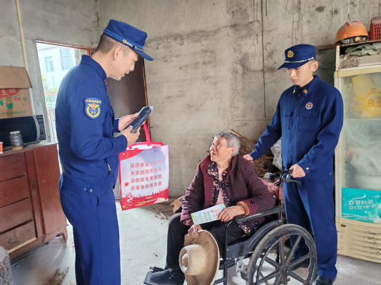 消防宣传人员入户为独居老人讲解消防安全知识送安全大礼包。朱燕林/摄
