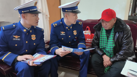 消防宣传人员入户为独居老人讲解消防安全知识。朱燕林/摄
