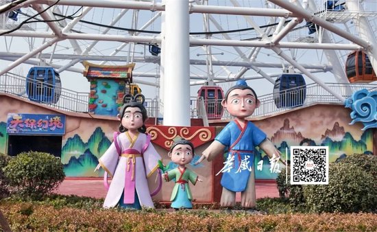 天保儿童梦乐园占地122亩,总投资1.2亿元。园区以“儿童友好”为核心理念,以“天保IP”为主线,融入董永与七仙女传说的文化元素,结合时光游线与生态景观,将孝文化转化为孩子们可触摸、可参与、可领悟的生动体验。