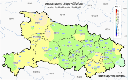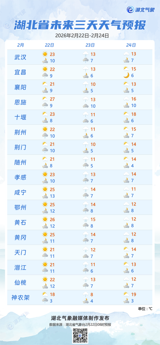 预报来源:湖北省气象台2026年2月22日08时预报