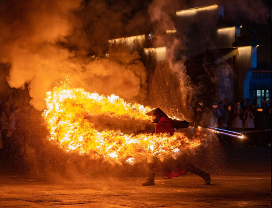 夜晚的重头戏更是精彩纷呈,非遗火技轮番上演,火裙舞、吐火秀、火魔方,等绝技带你领略极致热情。