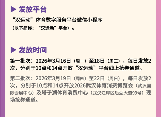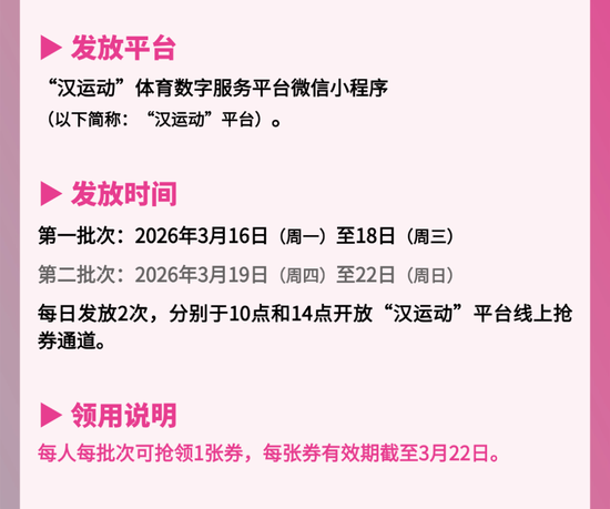 摘要: 今天(3月16日),2026武汉体育消费周即将启幕,第一批体育消费券即将发放,本次消费券设汉马美食券和汉马商品券两类券种。今天(3月16日)