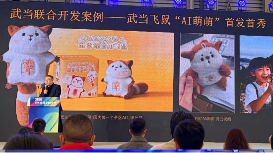 在创新产品方面,继与统一阿萨姆奶茶跨界联名获得市场良好反响后,“武当”IP在展会上推出了全新IP形象“AI萌萌”。该形象以栖息在武当山的特色灵兽“红白鼯鼠”为原型,融合AI科技与国风美学设计而成。未来,“AI萌萌”将作为武当文化年轻化、市场化发展的重要载体之一,持续探索跨界合作与IP创新。