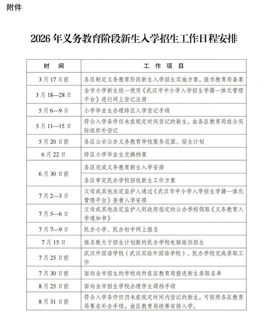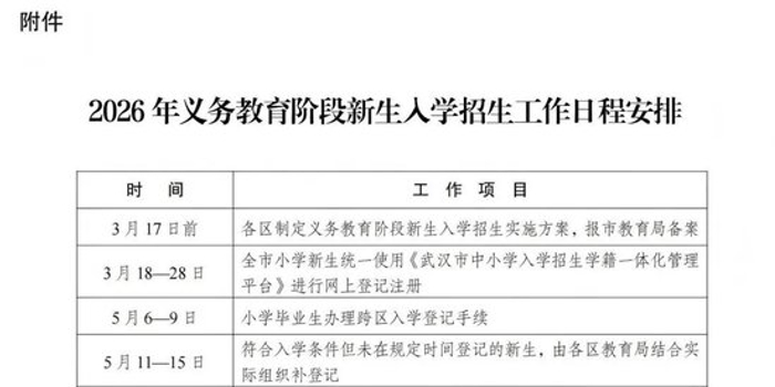 根据政策,今年武汉义务段新生入学坚持以区为主、免试就近、应入尽入、公民同招等原则,严格落实免试入学升学规定,不得通过文化课考试、测试等方式选拔学生,不得收取学生个人简历或视频音频等个人展示材料,不得以学科竞赛、考试证书、荣誉证书、培训证明等作为录取依据。