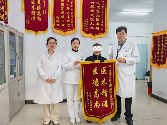 患者转入上级医院后,检查显示梗死血管堵塞程度超99%,医疗团队立即实施心脏介入手术,顺利植入支架开通血管。目前患者术后病情平稳,仍在住院接受后续治疗,尚未出院,家属便带着锦旗专程来到社区卫生服务中心致谢。