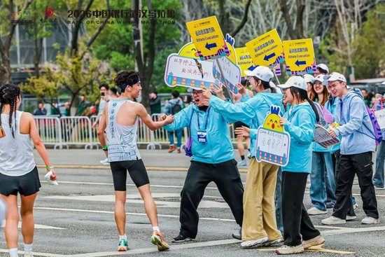 递水、指路、加油、鼓掌……来自武汉市20所高校的8000名志愿者凌晨到岗,他们以热情的笑容、贴心的服务、专业的素养,为选手提供从赛前引导、赛中补给到赛后恢复的全流程服务,成为赛道上的“文明风景线”。