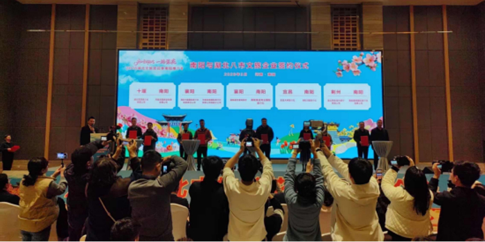 此次推介会最具新闻价值的核心环节,当属文旅企业签约与游客互送启动,成为推动豫鄂文旅深度合作的“关键一步”。18家来自南阳与湖北八市的文旅企业分两批登台签约,笔墨落处,是资源共享、客源互送、市场共拓的郑重承诺;双手紧握间,是优势互补、携手共赢的美好期许,为两地游客双向流动筑牢企业支撑。随后,两省九市文旅部门领导共同启动游客互送活动,全场倒计时的欢呼声中,标志着豫鄂两地游客互送正式进入常态化、规模化新阶段,将有效打破区域市场壁垒,激活文旅消费潜力,让两地群众共享文旅发展红利。