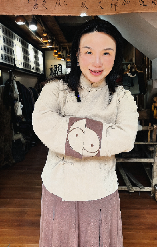 “设计很有特色,穿上特别有感觉。” 来自杭州的游客安琪试穿后连连称赞,衣服上的蜡染工艺配上手绘祥云很精致,还有一件衣服袖口合起来就是一个完整的太极图,这些藏在细节里的小心思,让人眼前一亮。