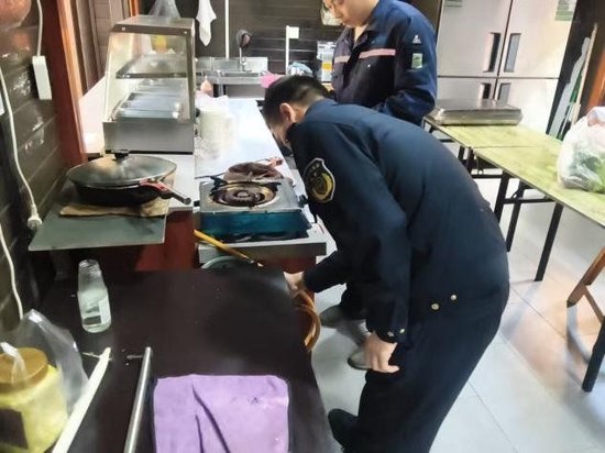 蔡家榨街道综合执法中心联合黄陂城管直属三中队、浙楚能源公司、蔡榨供电服务站等单位,深入沿街餐饮商户、老旧小区及燃气供应站点开展安全检查,重点排查燃气管网、阀门、报警装置及用气环境,对发现的问题现场指导整改并建立隐患台账,实行闭环管理,同步开展安全用气宣传,拧紧节日燃气“安全阀”。
